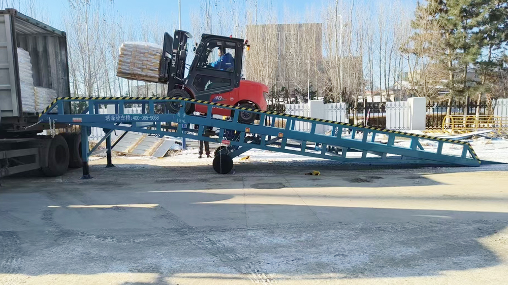 - 移动性:移动式液压登车桥可以利用叉车牵引或推行,轻松转移到不同的作业位置,具有很强的灵活性和适应性。