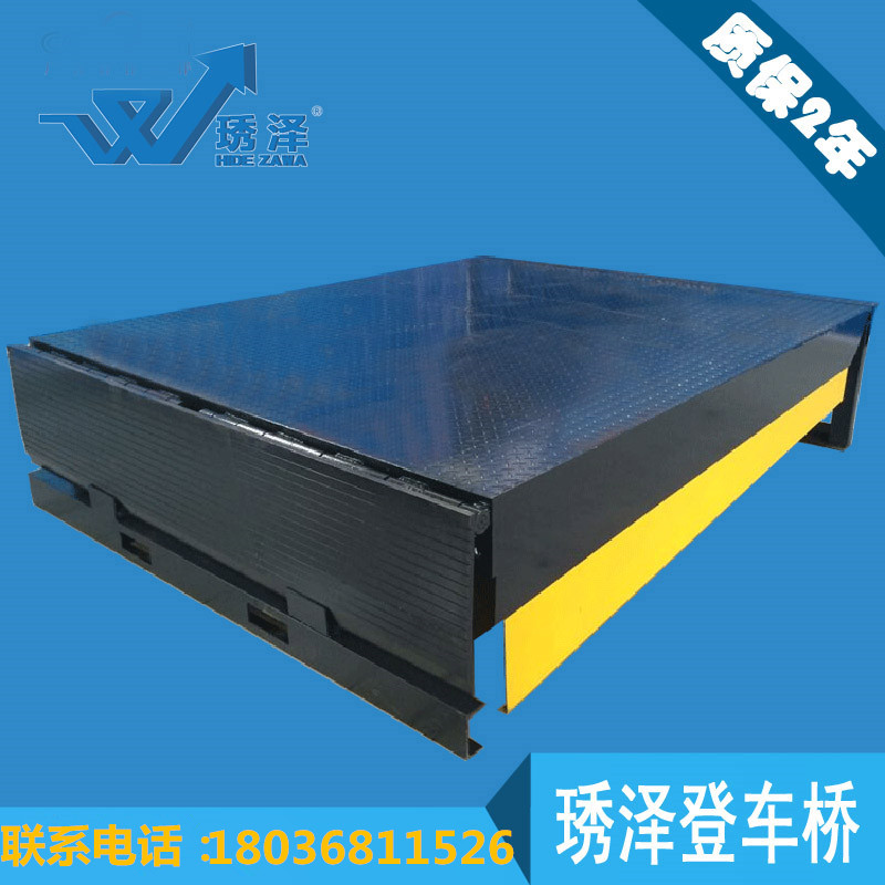 装卸货平台是安装在仓库月台上的卡车、集装箱货物装卸专用辅助设备。固定式登车桥平台前端高度可根据车厢高度进行调节,搭接唇板始终紧贴于车厢。搬运车、叉车等各种搬运车辆可平稳的通过固定式液压登车桥,在仓库月台与车厢间运送货物。采用单按钮控制,操作简单方便,只需一个操作工人即可实现货物的装卸。固定登车桥使企业繁重的装卸工作变得轻松、快捷,减少大量劳动力,提高工作效率,获得更大的效益。是实现企业安全文明生产,提高物料流通速度之所需。